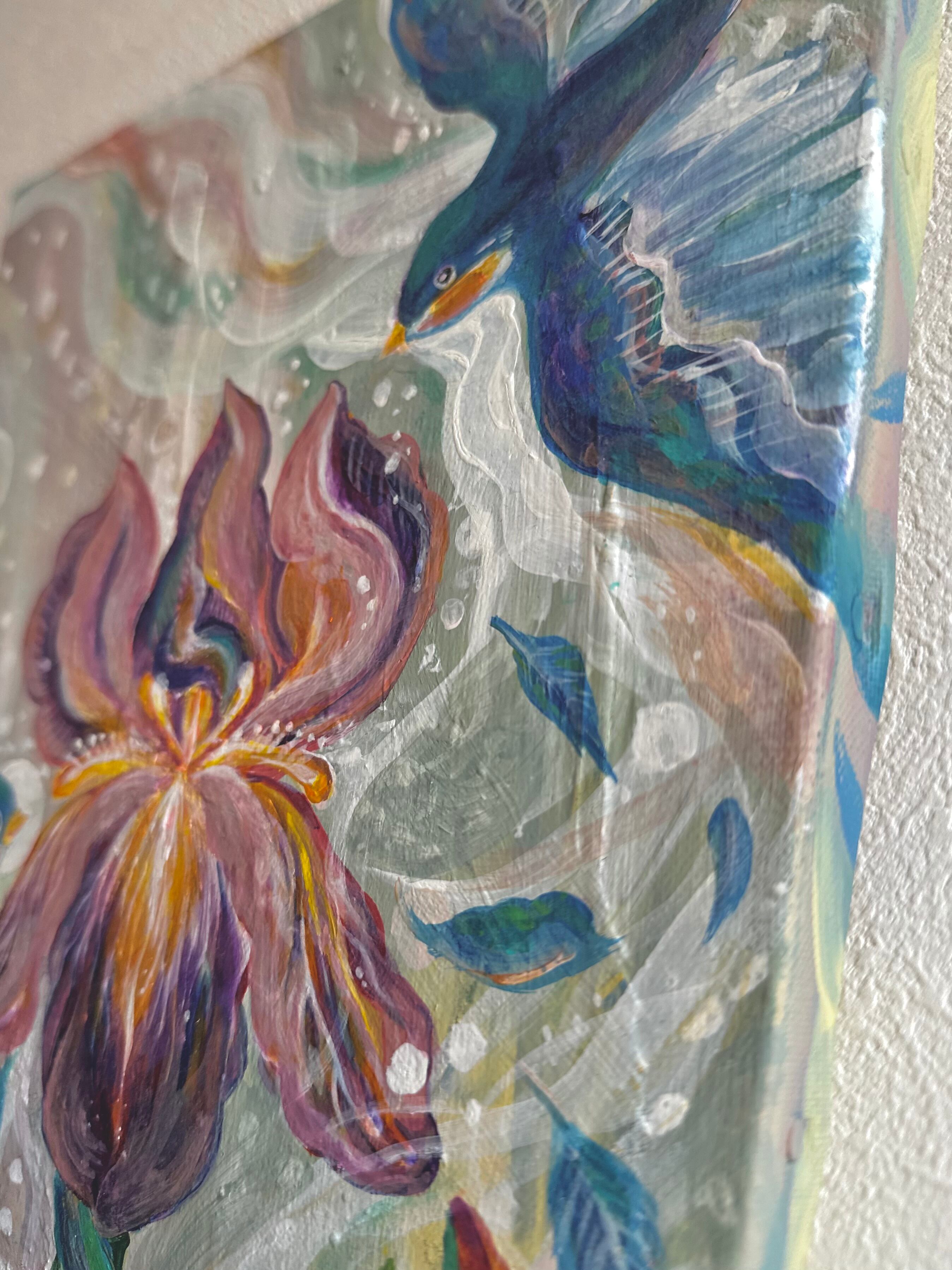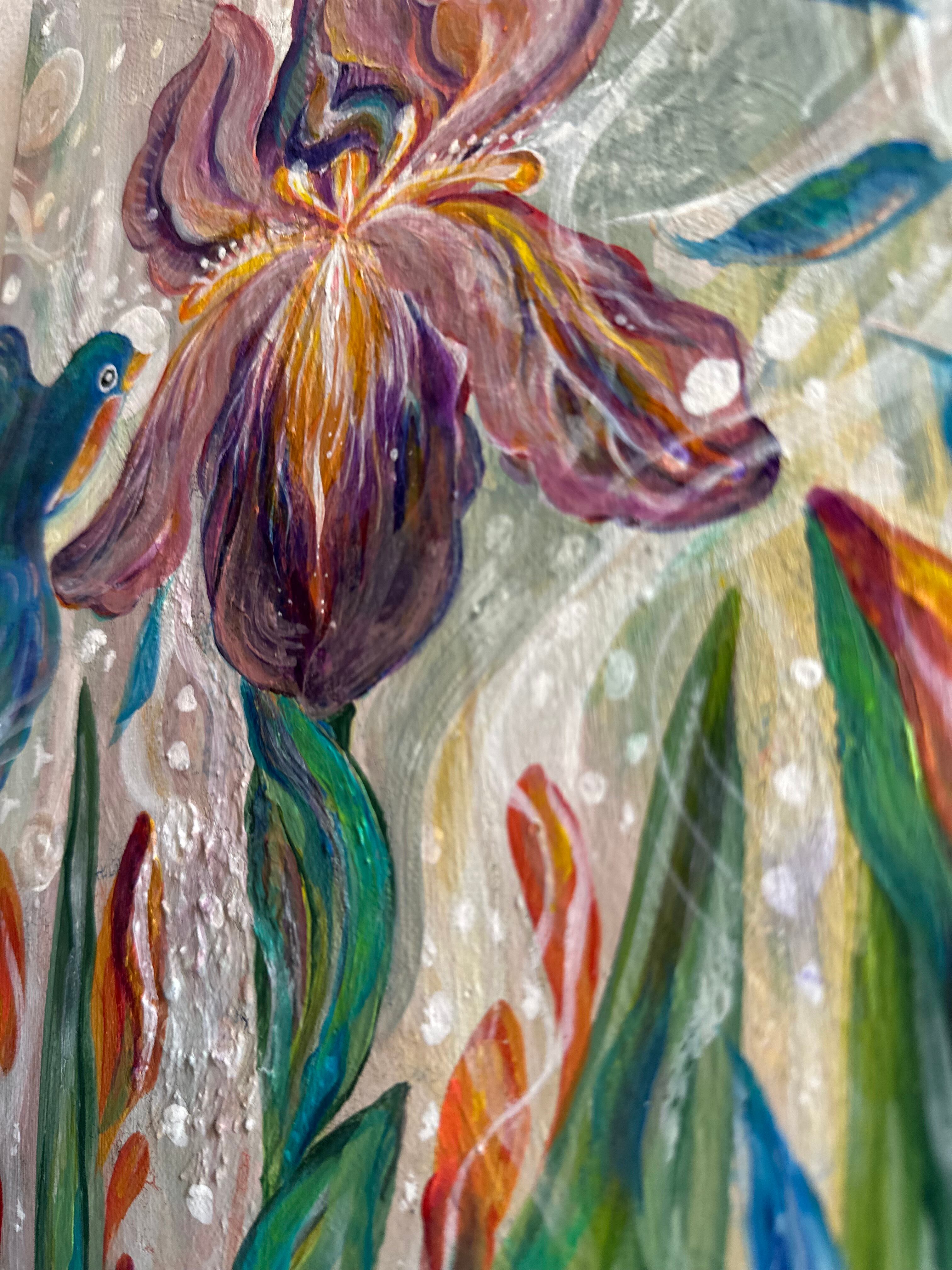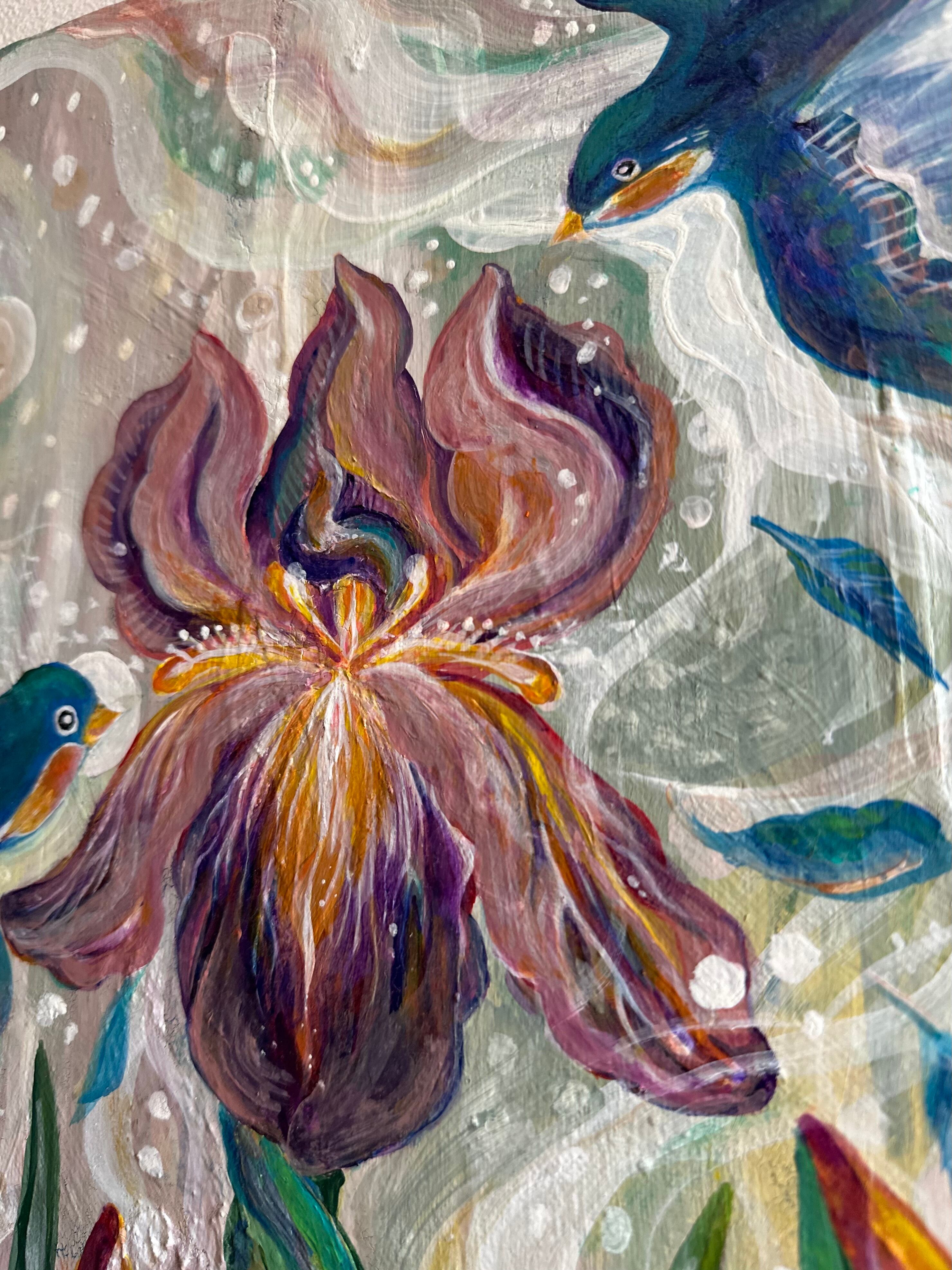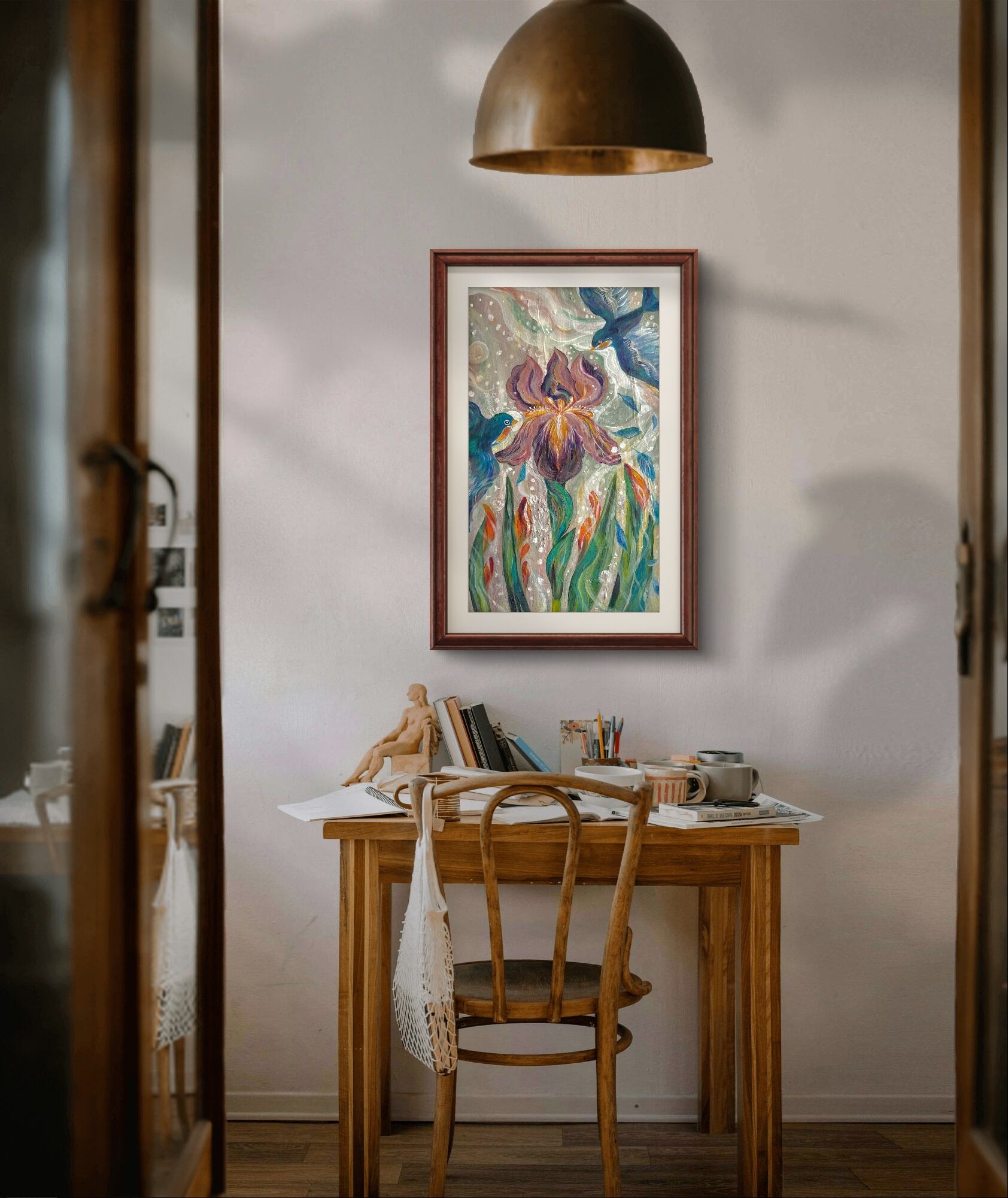 虹の女神イリスの足元に咲く紫のジャーマンアイリスを描いてみました