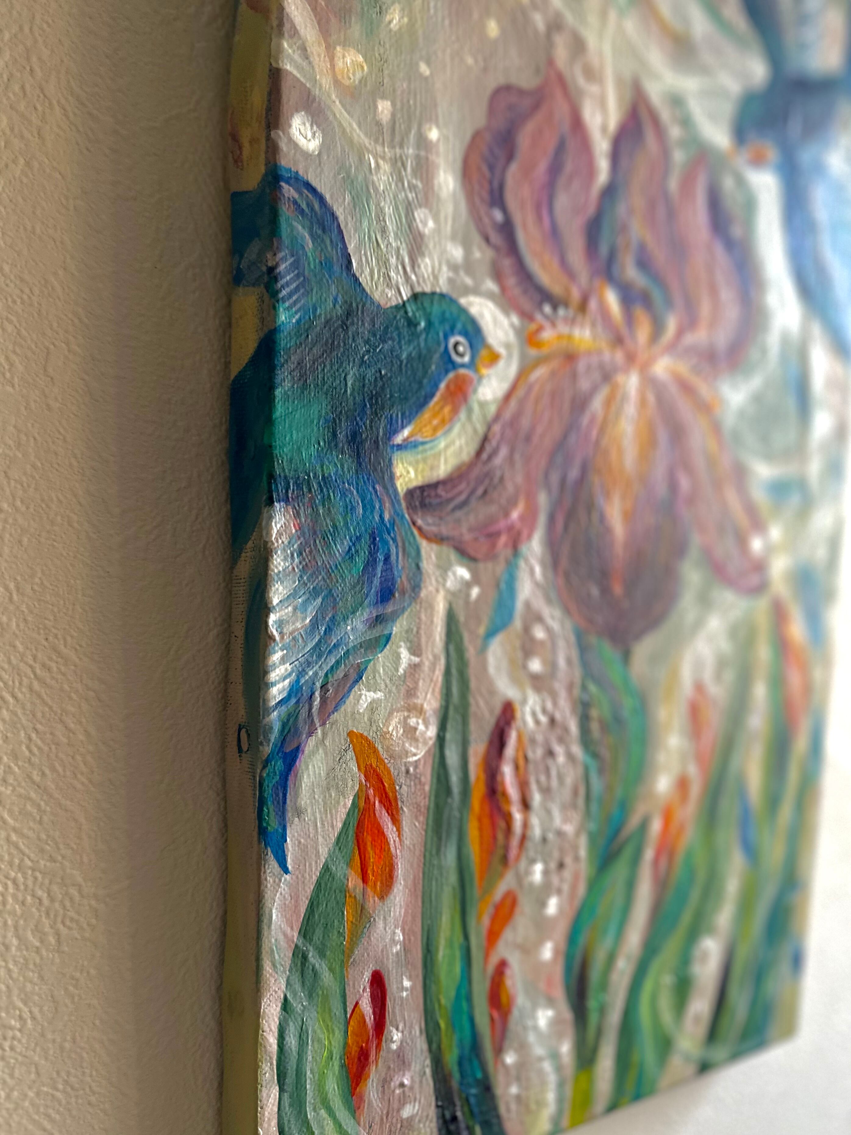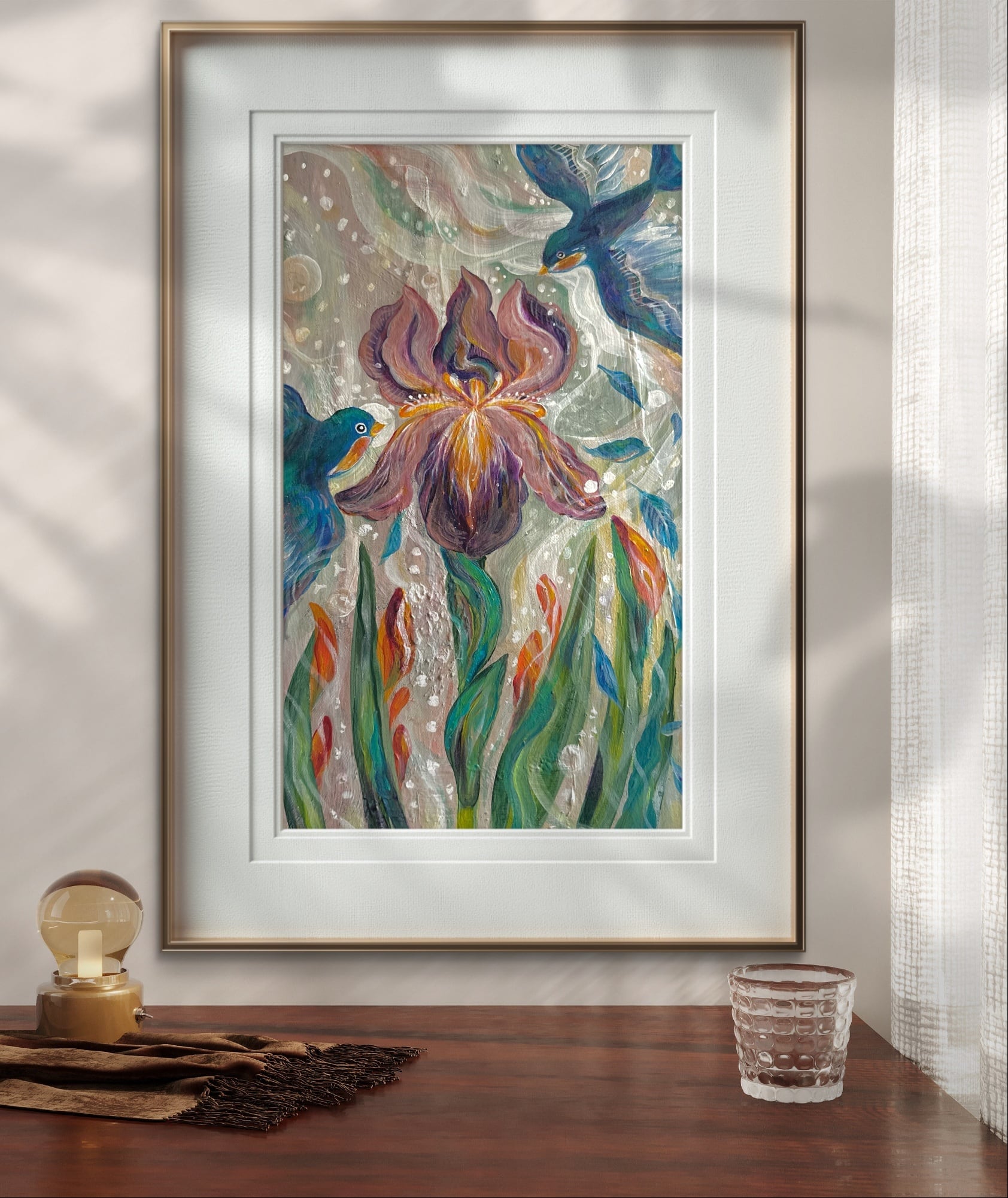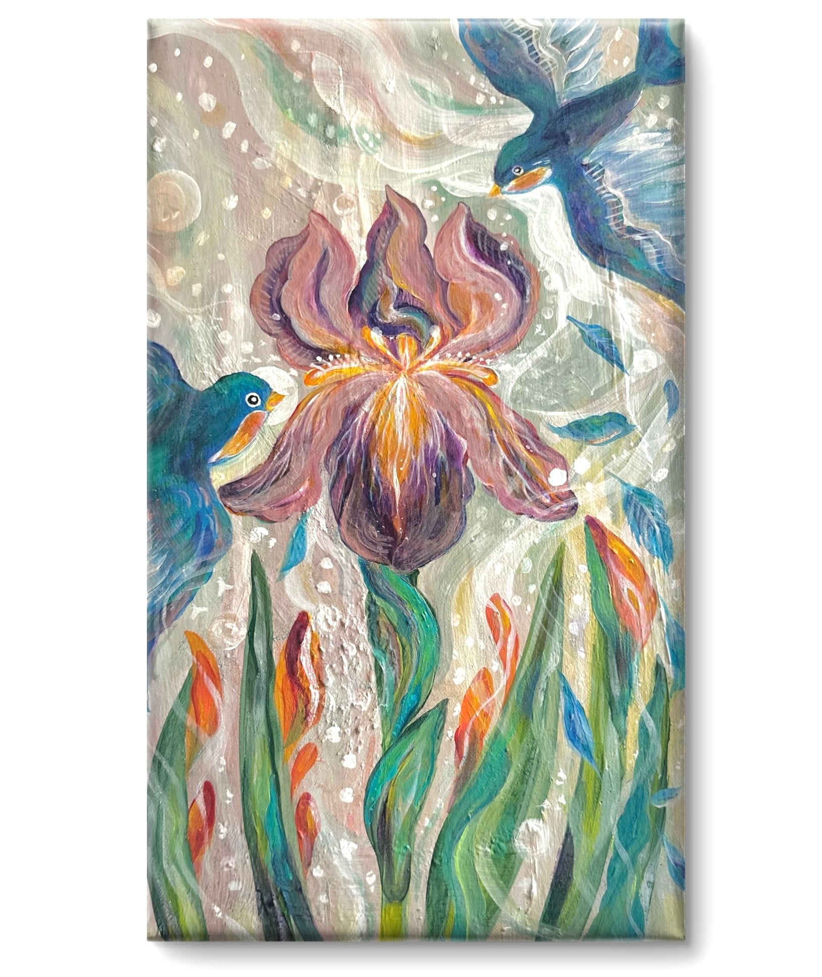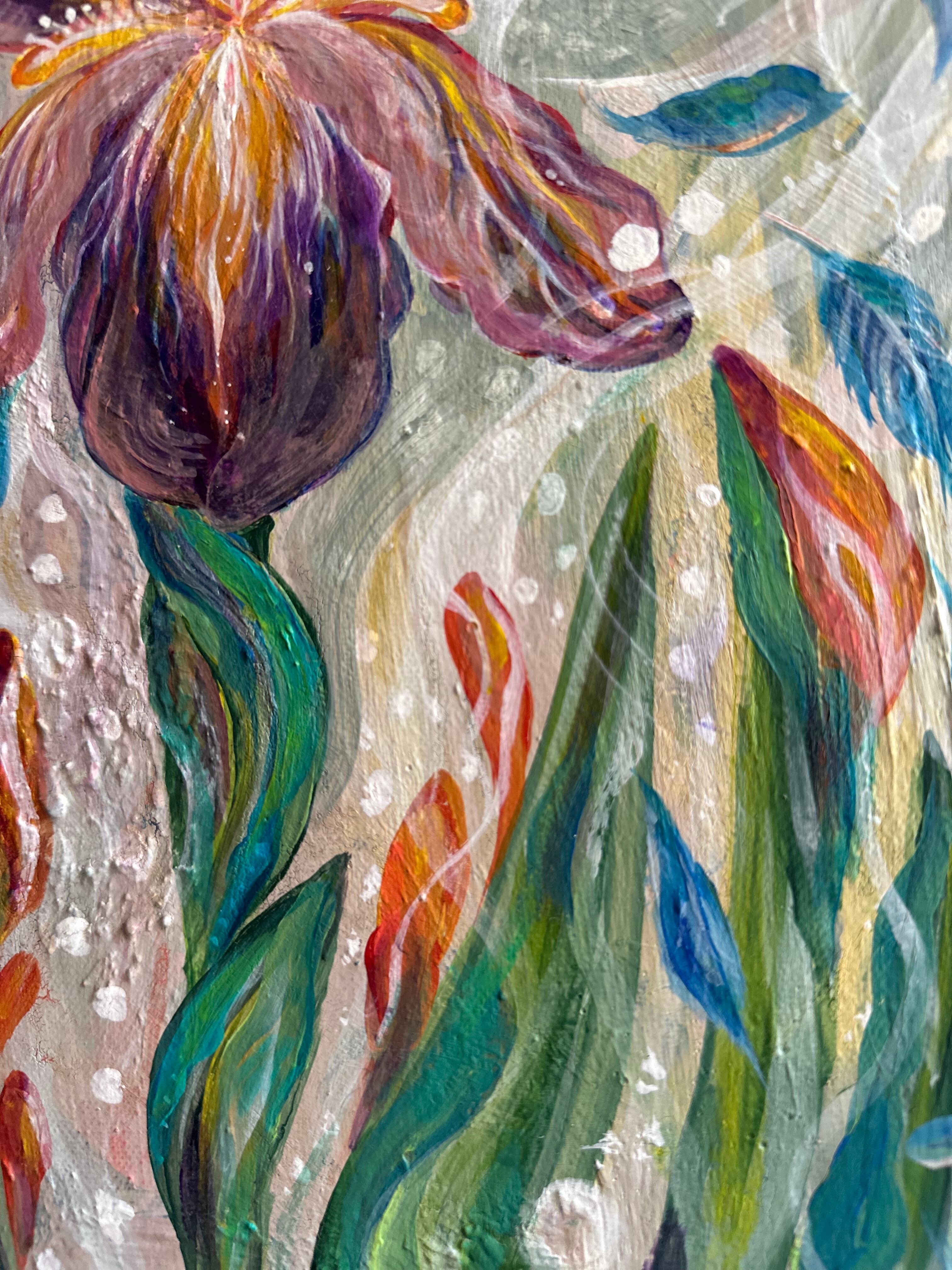 虹の女神イリスの足元に咲く紫のジャーマンアイリスを描いてみました