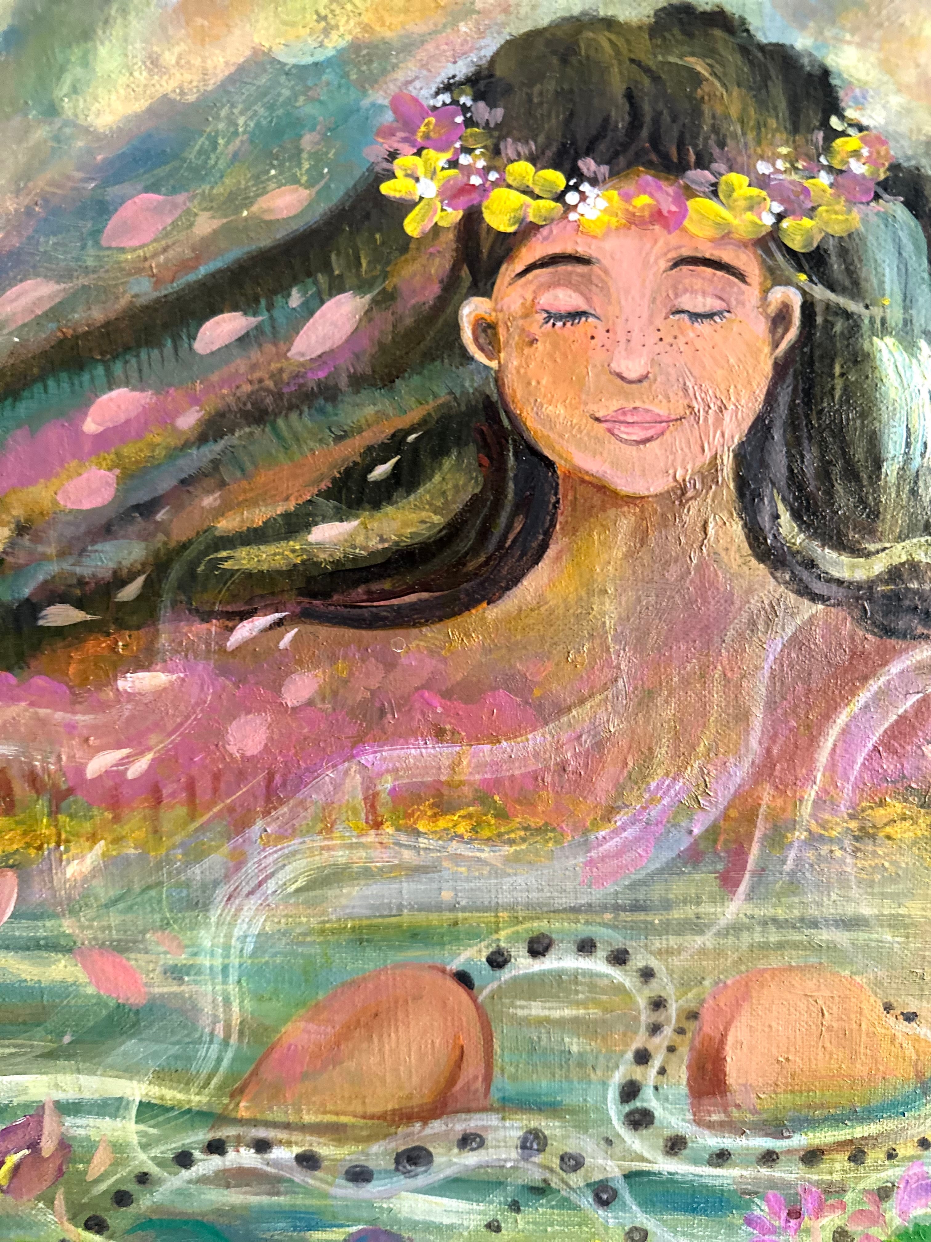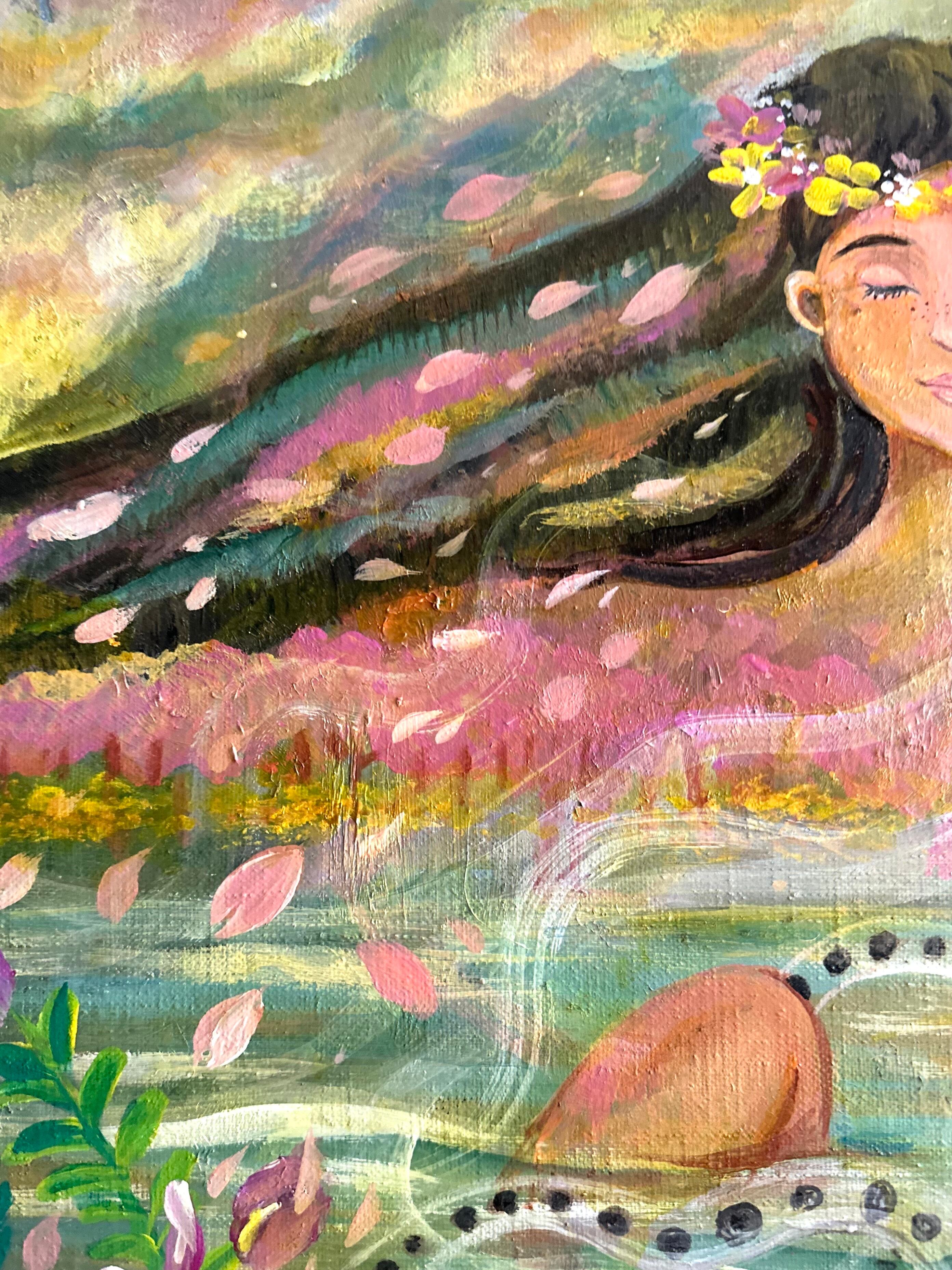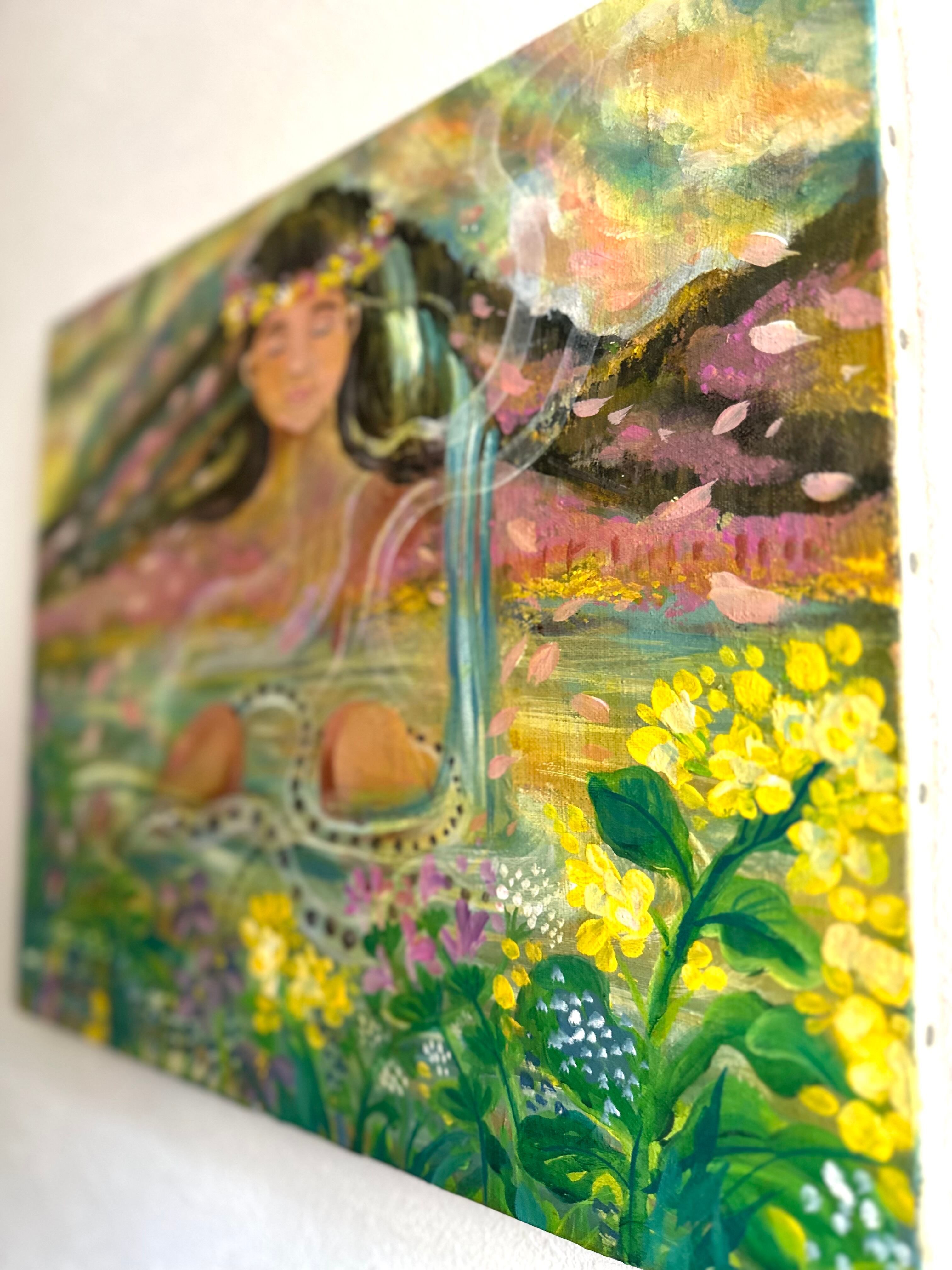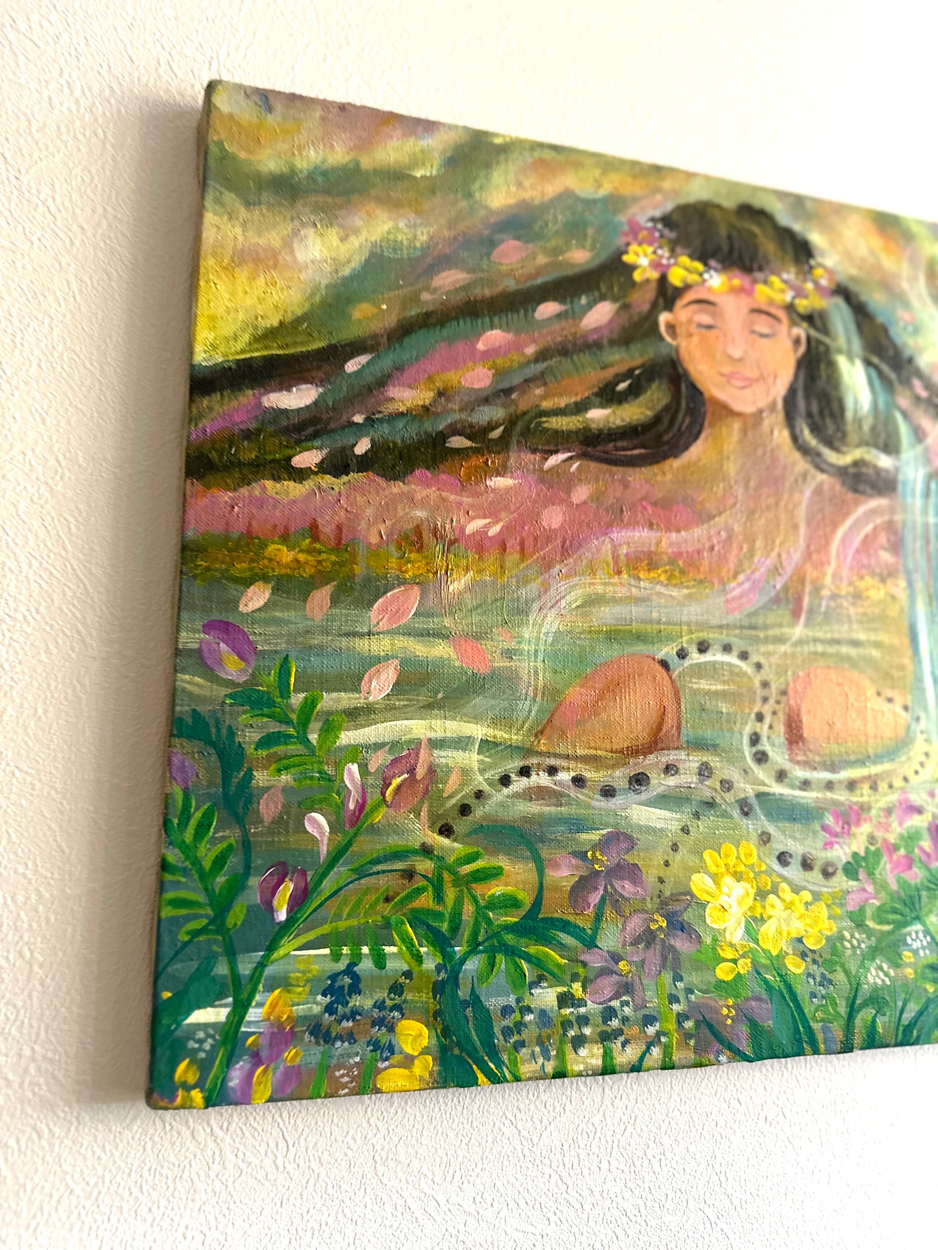 生きとし生けるものたちの調和 自然界の厳しさと美しさ。巡りゆく季節の色とりどりの花々や生き物たちが生まれ死に土に還る この循環が世界を形成し、それぞれの存在がもたらす調和を描きました。私達が幼い時から見ている季節のこの光景や生態系がいつまでまでもあり続けますように。次の世代や子供達にも沢山のお花や虫や魚達、生き物達に
