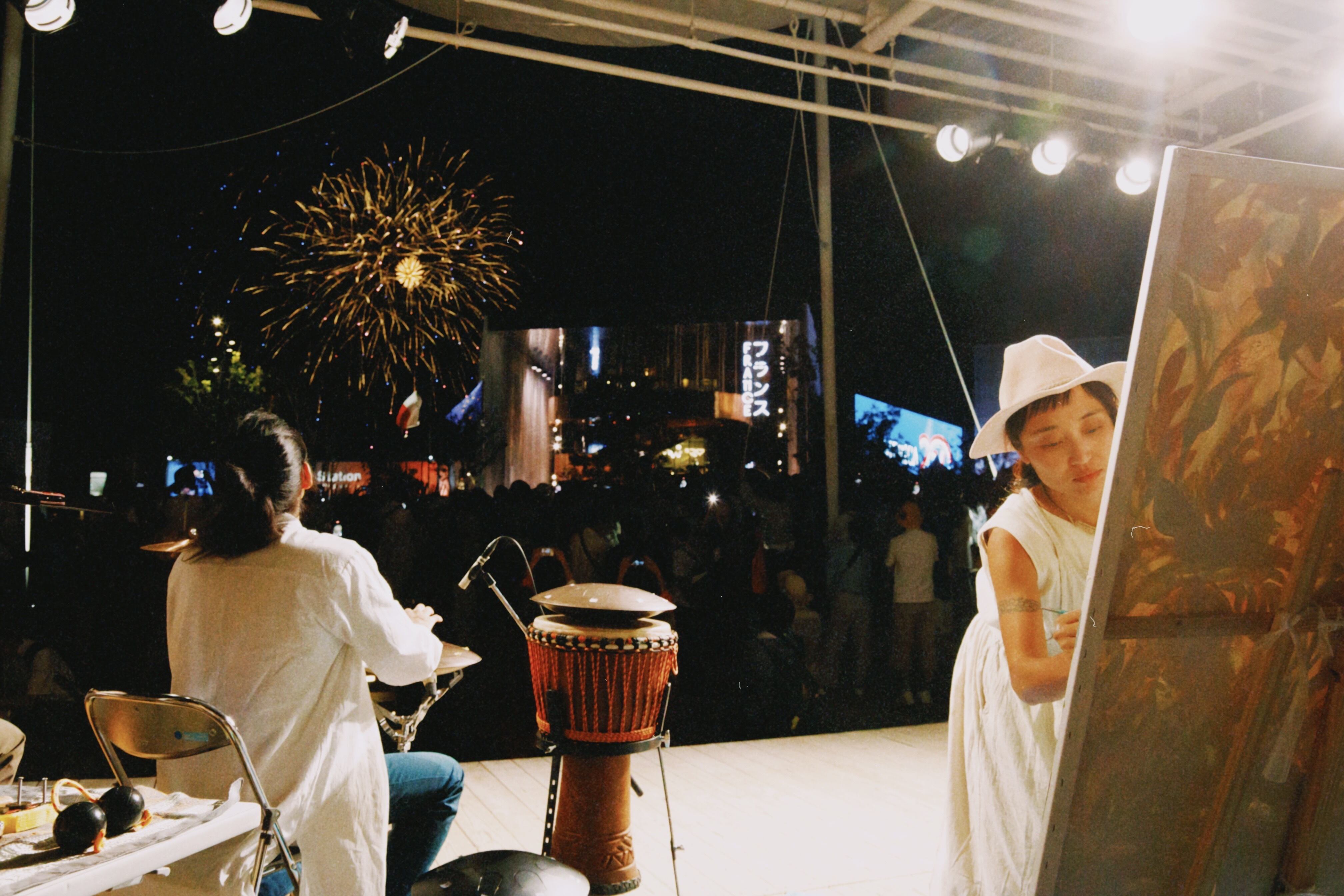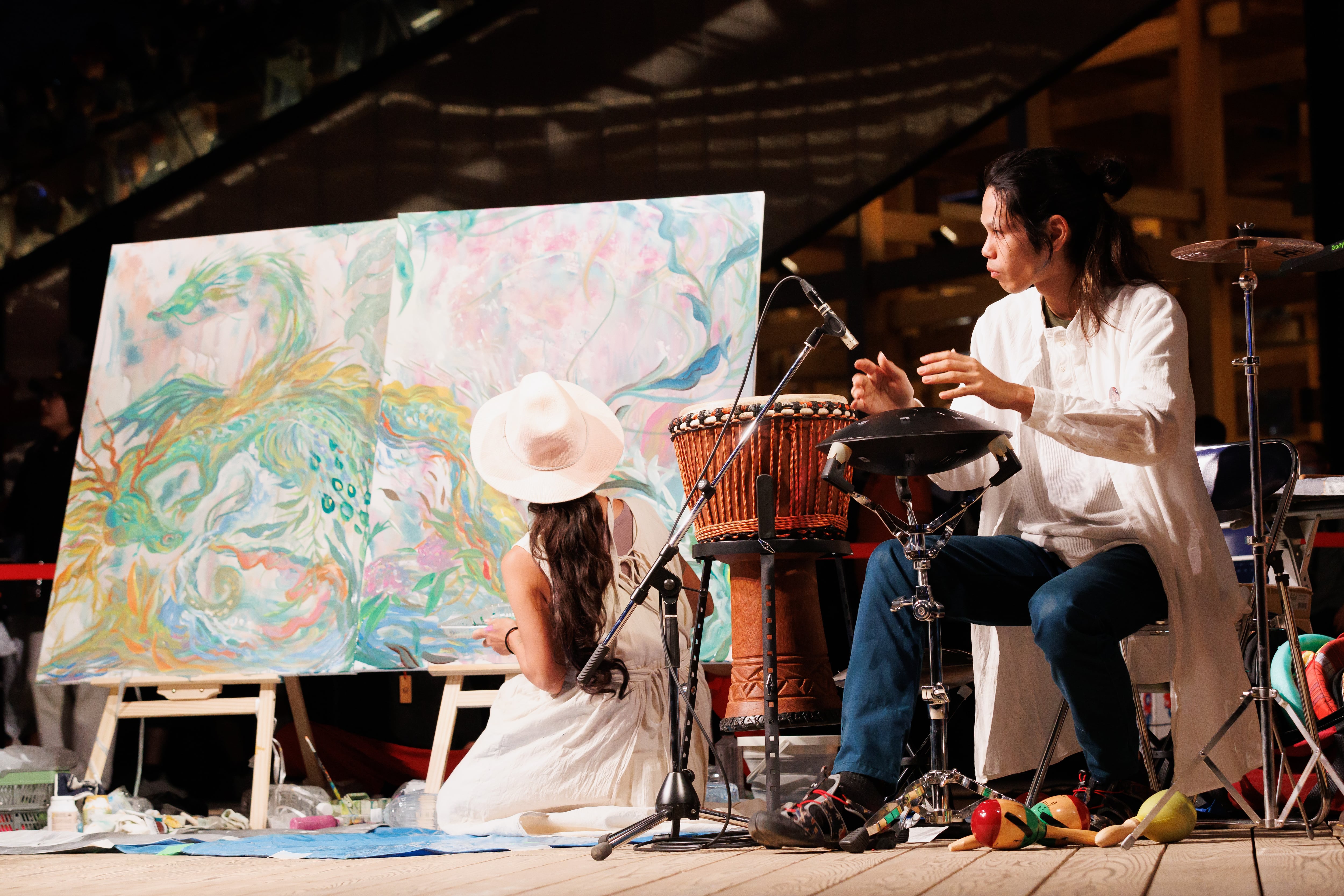 2025大阪万博のおとりっぷ&kalimba caravanのステージで2時間で2枚描いた作品の一つです。