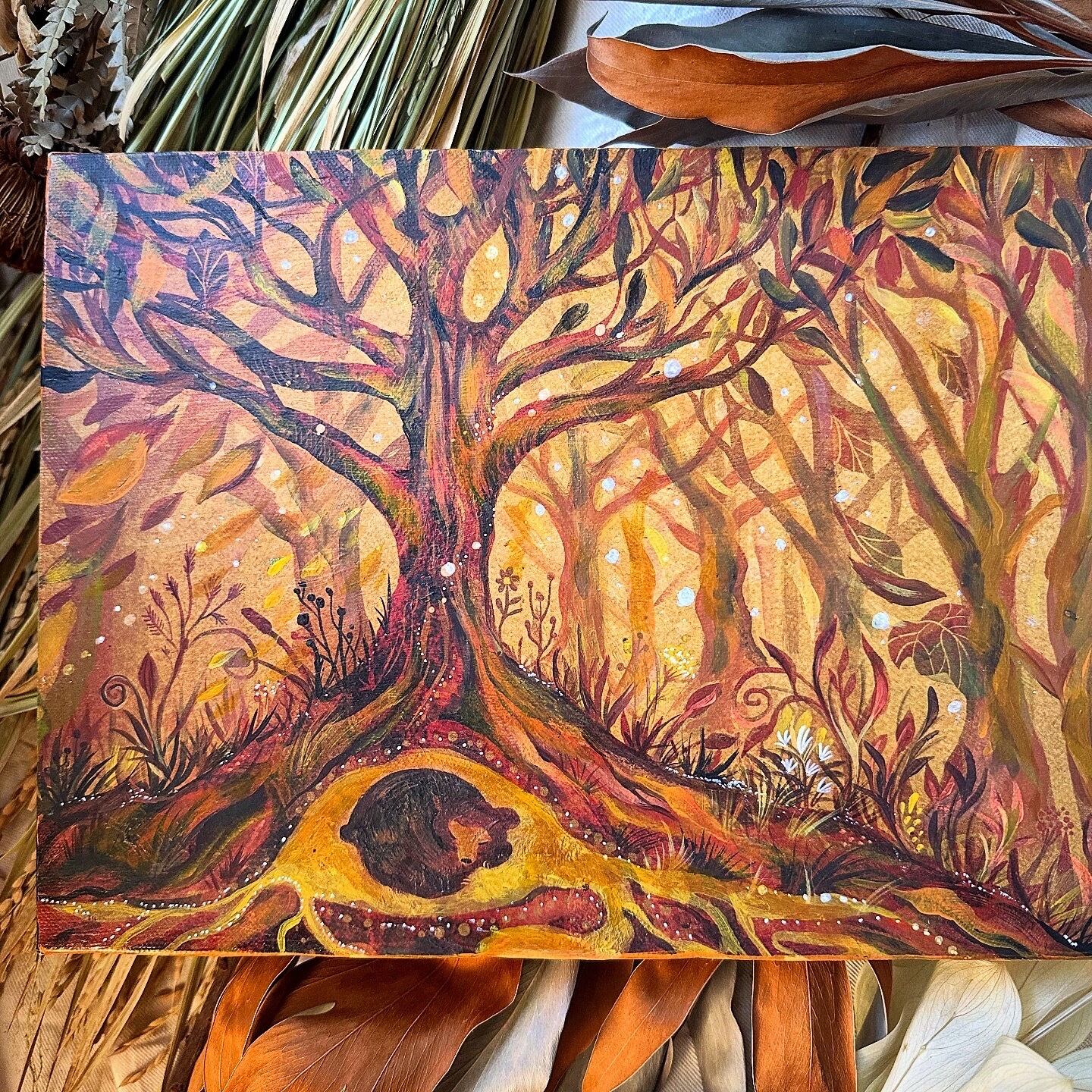 静寂の中で生まれる神秘的な森の物語 深い緑の葉々が揺れるたび、聖なるエネルギーが流れ込んできます。終わりなき生命の息吹を表現しました。